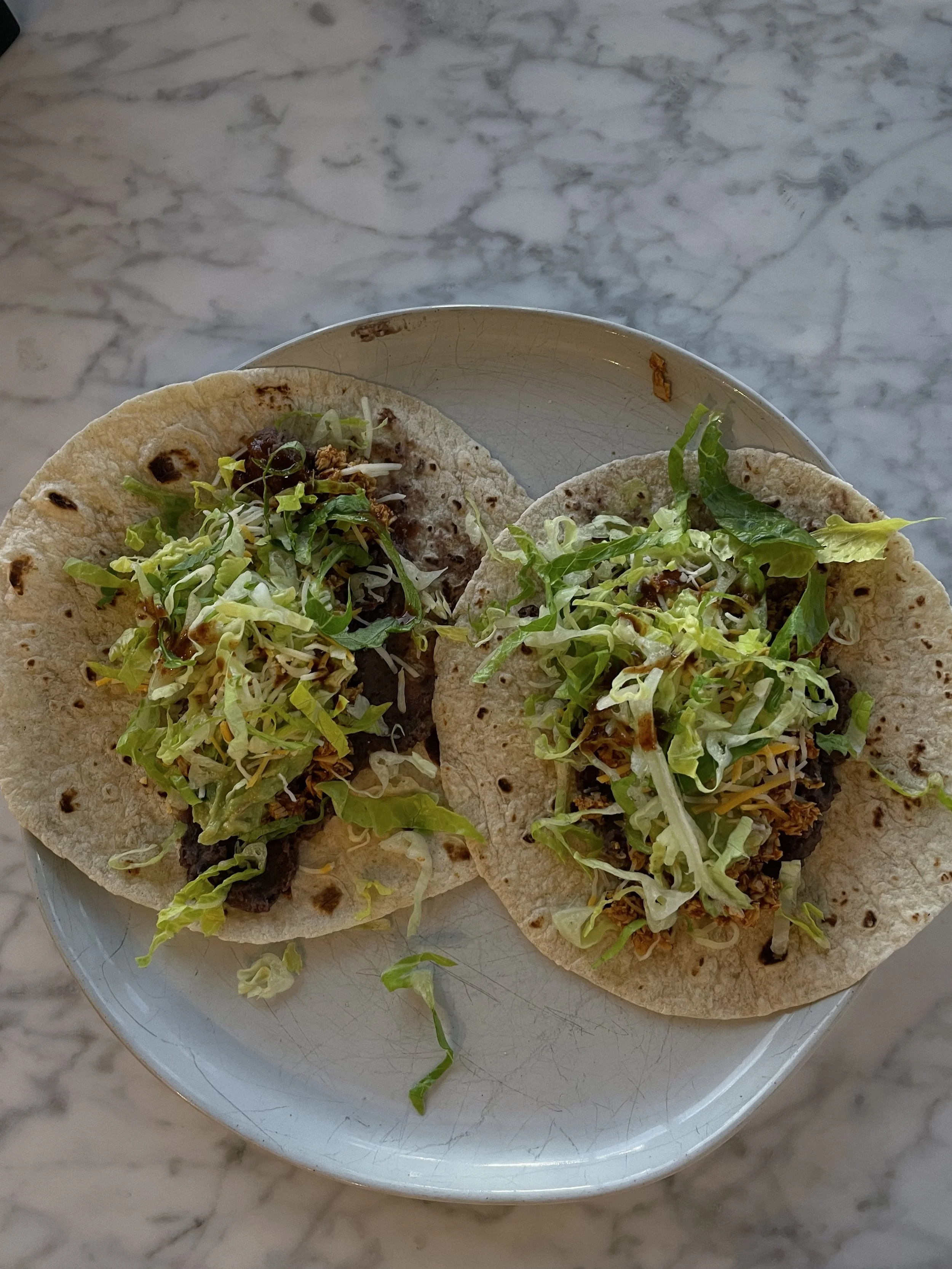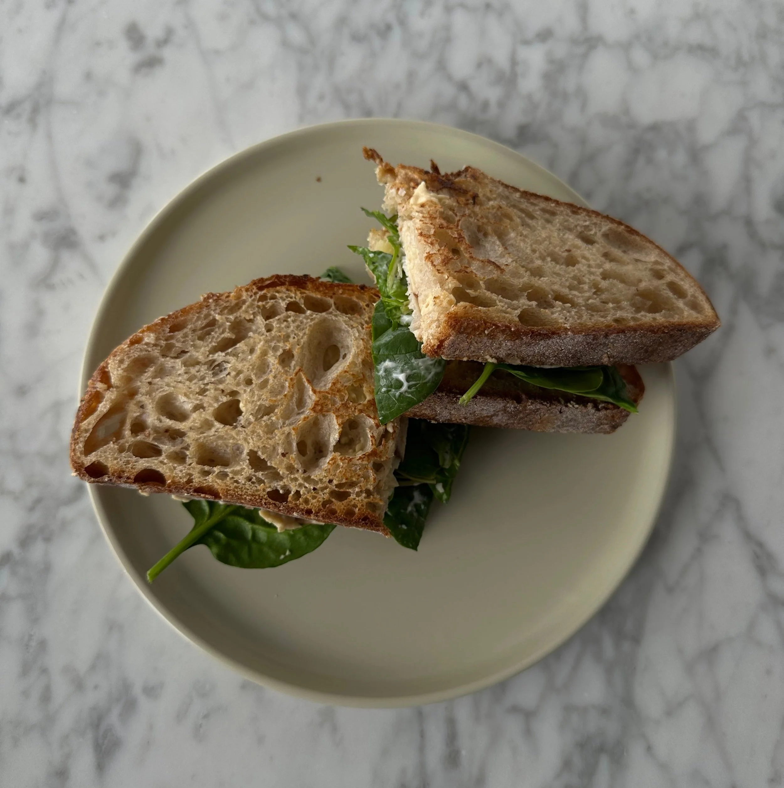 Dressing: 4 tbs Olive oil, 1 tsp dijon mustard, 1 tsp maple syrup, 1 tsp tahini, S&P.